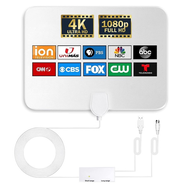 TV Antenna Indoor - Local Channels Digital TV Antenna - Supports 4K 1080p - with Signal Booster - Remote Reception Antenna for Smart TVs and Older TVs - 16ft HDTV Coaxial Cable (White)