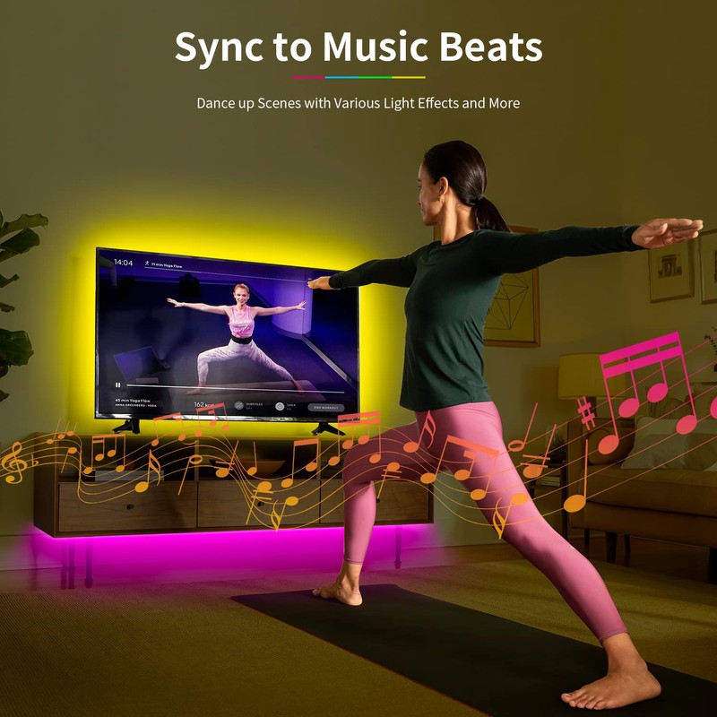 - ✅【Sync with Music】Led lights for tv with highly sensitive microphone,spectrum with light and colors adjusting automatically base on the ambient sound. The light strips will sync bias lighting to your favorite song and shows how color changing with the rhythm. Create romantic, festive atmosphere for events like Halloween Christmas Valentine or party.