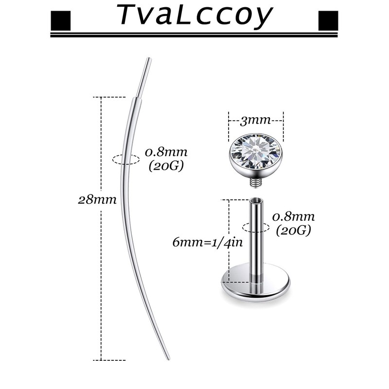 - Dimension Gauge: 20g=0.8mm, Stud Wearable Length: 1/4in=6mm.