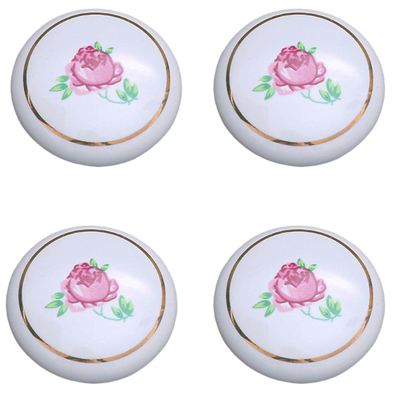 Tverghvad Ceramic Hand Painted Drawer Knobs, [4 Pack] Vintage Rose Flower Round Cabinet Knobs and Pulls, Kitchen Furniture Knobs for Dresser/Cupboard/Wardrobe/Closet (Rose, 4 Pieces)