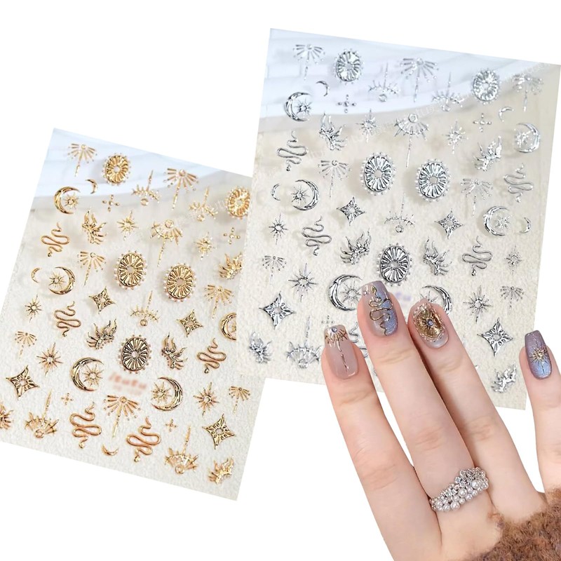- 【2枚セットで充実デザイン】柔らかいPVC素材のネイルシール&ジェルネイルシール2枚セット。星と月ネイルを中心に、トーテムスネークやボヘミアンフラワーなどヴィンテージモチーフを凝縮。ノーダメージネイル設計で爪に優しく、自宅でもサロン風の5Dネイルアートが手軽に再現できます。