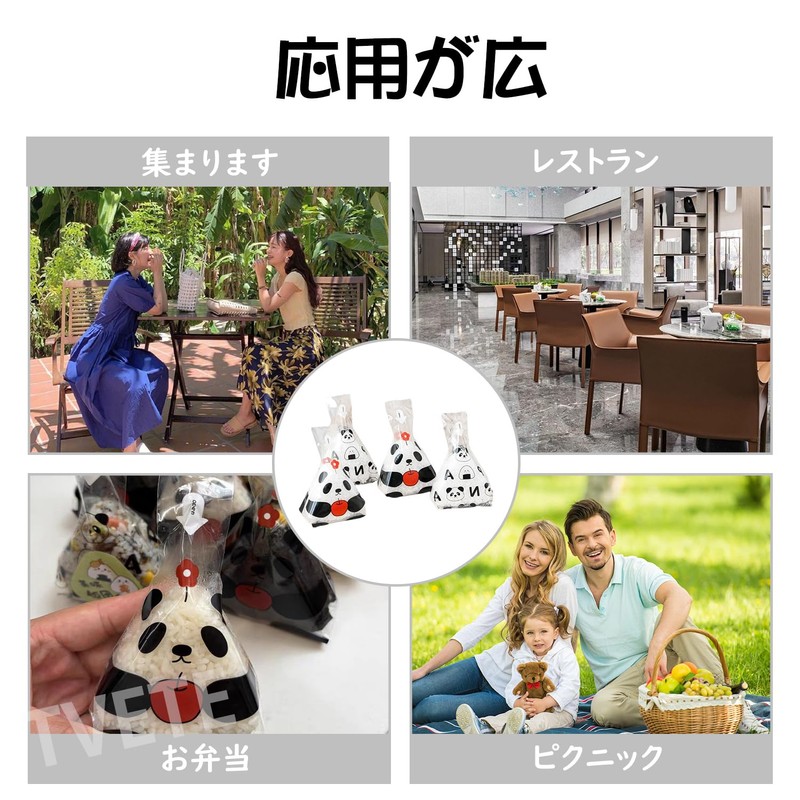 - 【適用範囲】お弁当、ピクニック、コンビニ、レストラン、家庭用など多用途にお使いいただけます。実用的で美しいので、おにぎり作りに最適です。三角形のおにぎり袋はおにぎりをしっかりと固定できるので、輸送中に外れることはありません。