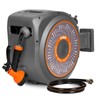 • Lock at Any Length: The garden hose reel designed with a precise locking mechanism, allows you to extend the hose to your desired length, keeping it securely in place until you pull again.With a pre-installed 100-foot x 1/2-inch hose, it provides ample reach to cover every corner of your garden effortlessly.