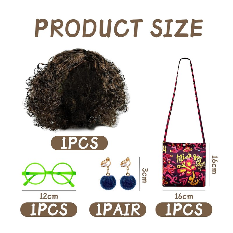 - 【Product Content】You Will Receive 1 Wig, 1 Shoulder Bag, 1 Earrings And 1 Pair Of Glasses. The Wig Is Brown In Color, The Shoulder Bag Is Colorful And The Earrings Are Blue In Color, Making It Suitable For Role-Playing And Party Outfits.