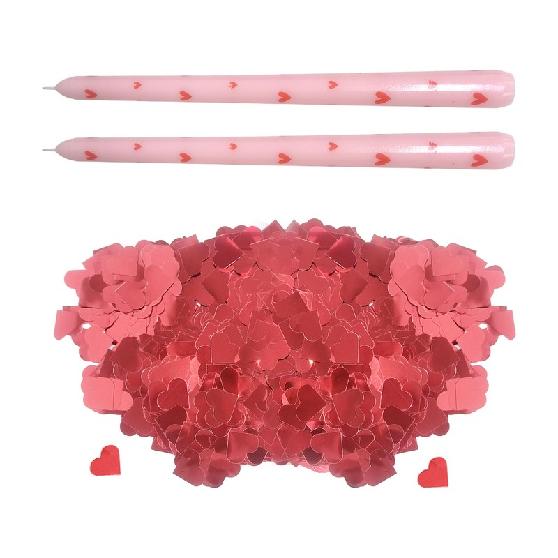 TVSVKWE 2 Long Pink Candles, 1 Pack Of Red Confetti, Heart-Shaped Print, Romantic Candlelight Dinner Decoration, Suitable For Valentine'S Day Wedding Anniversary.