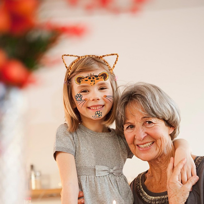 - 【Product Content】You Will Receive 4 Cat Ear Headbands And 2 Face Patches. The Headband Sizes Are About 12*16Cm And 16*21Cm Respectively, With The Colors In Black And Leopard Print; The Face Patch Size Is About 12*11Cm, With The Colors In Mixed Colors, Which Is Suitable For Creative Role-Playing And Party Decoration.