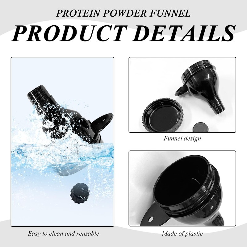 - Product ContentYou Will Receive 4 Pieces Of Protein Powder Funnel. The Color Is Black And Is Suitable For The Distribution And Carrying Of Protein Powders And Other Powders.