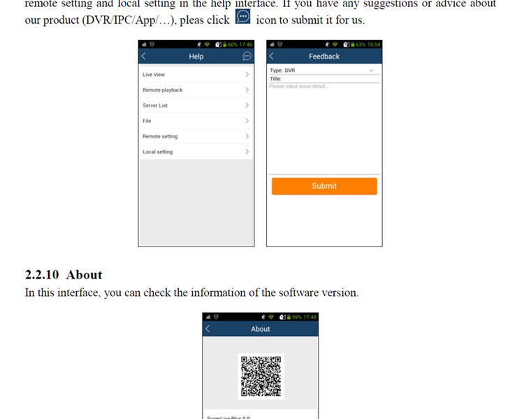 Windows PC, MAC and iPad surveillance, and smart phone Android and iPhone, saving settings on your smartphone by scanning the QR Code.
