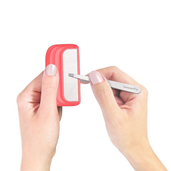 Tweezerfile Tweezer Sharpener & Tweezer Set (Coral Red)