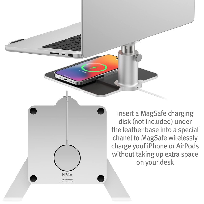 - Wireless Charging - Insert a MagSafe charging disk (not included) under the leather base to wirelessly charge your iPhone or AirPods without taking up extra space on your desk.