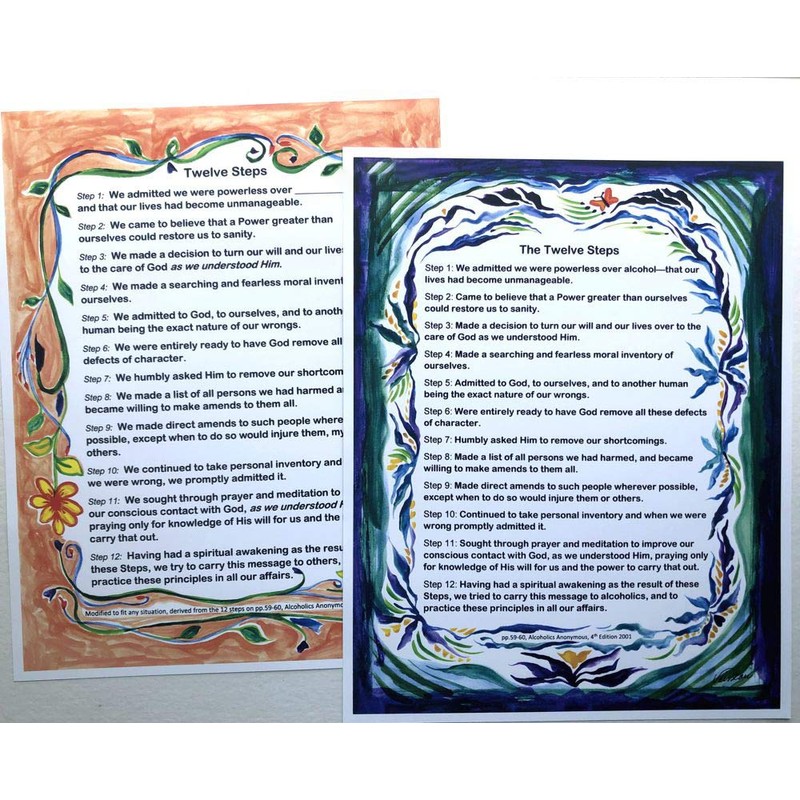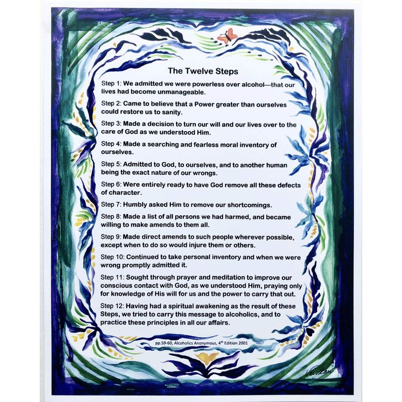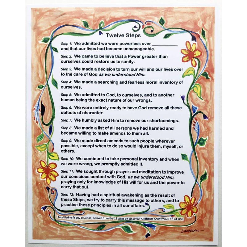 Twelve Steps 11x14 AA 12 step recovery poster - Heartful Art by Raphaella Vaisseau