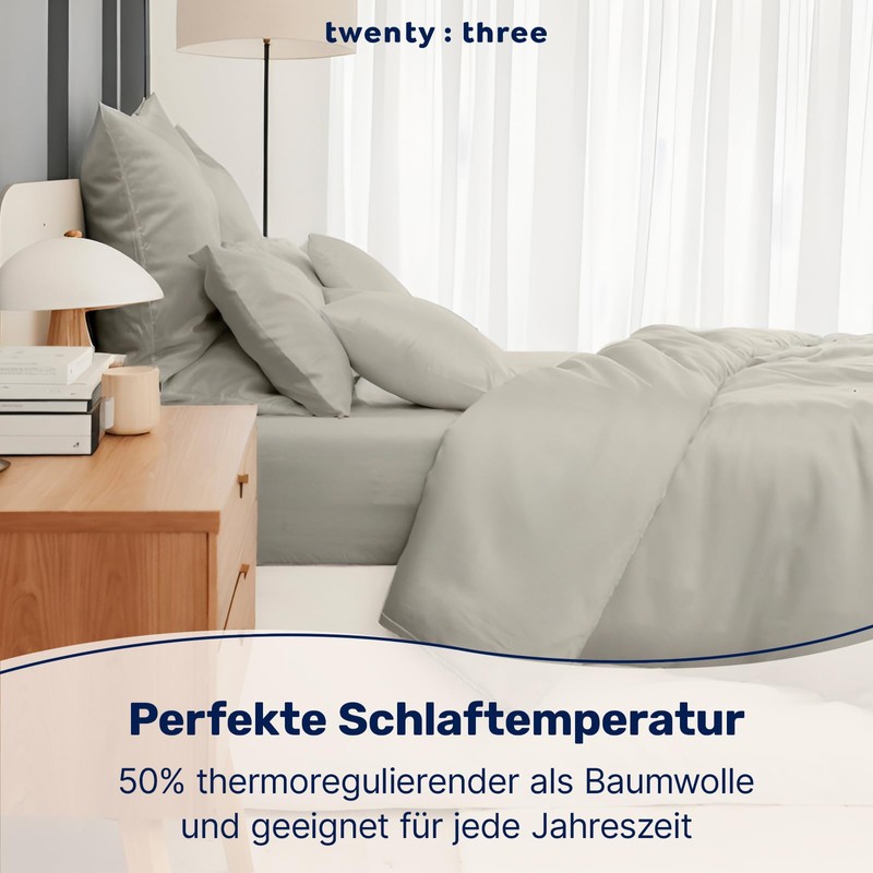 twenty:three® 100% Eucalyptus Bed Linen, (1x) 135 x 200 cm + (1x) 80 x 80 cm, Light Grey, Tencel™ Lyocell, with Zip, for Summer and Winter, Sustainable, Hypoallergenic, Soft, Mite-Free