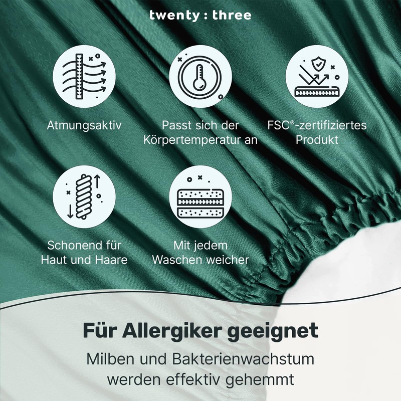 twenty:three Lyocell Fitted Sheet, 200 x 200 cm, Forest Green, 100% Tencel, Derived from Eucalyptus, High Quality, Sustainable, Breathable, Luxury, Hypoallergenic