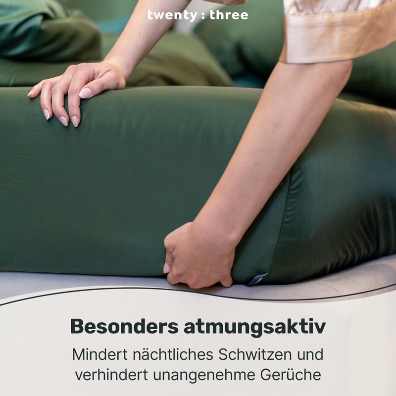 twenty:three Lyocell Fitted Sheet, 200 x 200 cm, Forest Green, 100% Tencel, Derived from Eucalyptus, High Quality, Sustainable, Breathable, Luxury, Hypoallergenic
