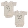 - This adorable infant bodysuit set is the perfect pregnancy announcement or gender reveal. Your family and friends will love this fun new twin announcement!