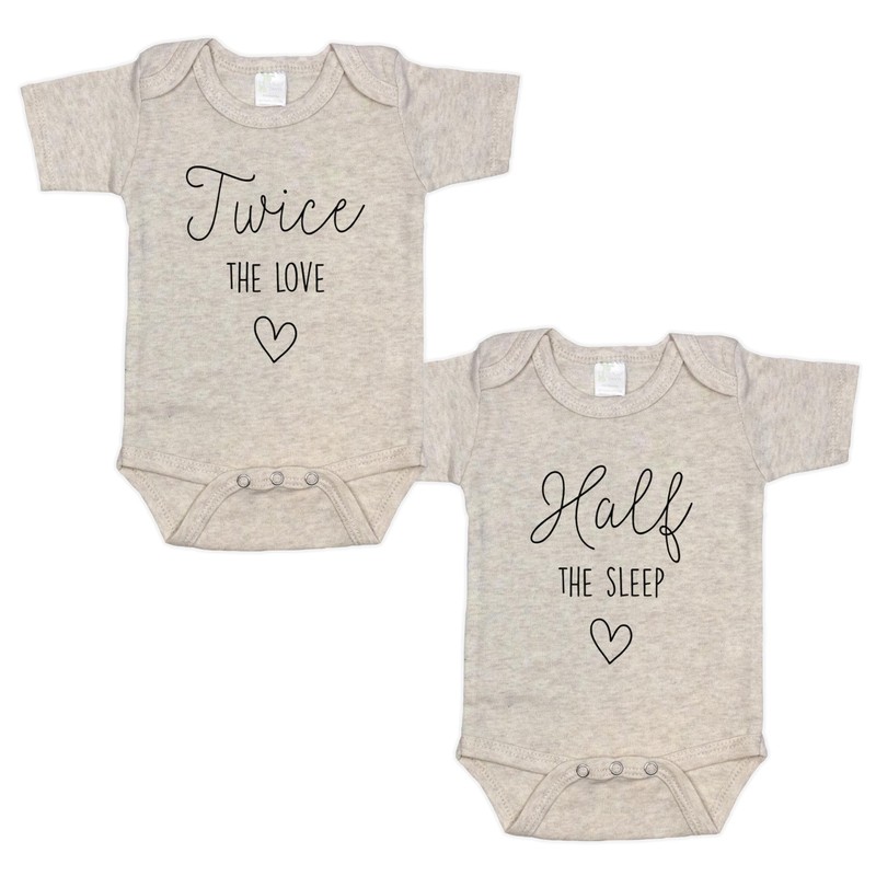 Twice The Love Half The Sleep - Twin Reveal - Pregnancy Announcement Infant Bodysuit - Surprise For Friends and Family (Natural)