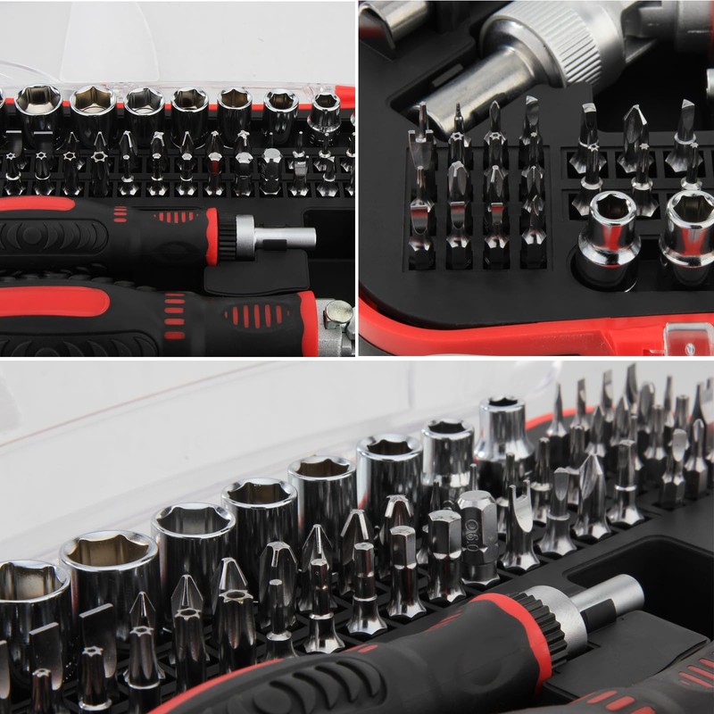 - 【Durable Material】: The Ratcheting Screwdriver Kit are made of high-density chrome vanadium steel, provides durability and corrosion resistance, can withstand higher torque. The precision bits are designed to fit snugly into fasteners, reducing wear and ensuring a secure grip, while the heavy duty sockets resists stripping.