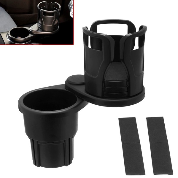 • 2 IN 1 MULTIFUNCTIONAL DESIGN - Equipped with two storage cups by adjusting the rotatable base, small in size and large in capacity, for the purpose of saving car space, can hold two drinks at the same time.