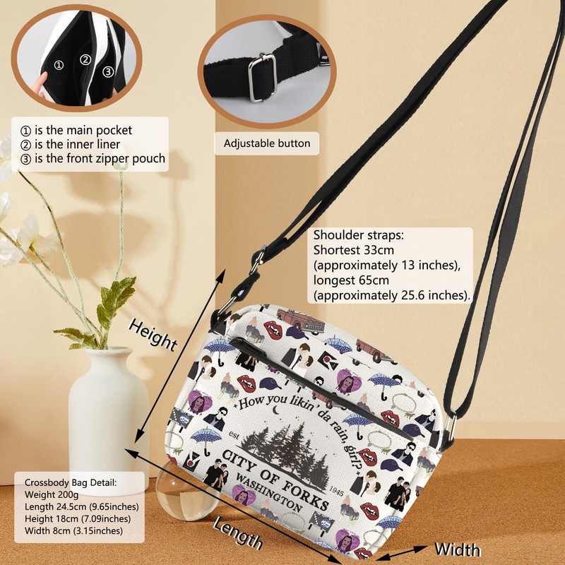 Twilight Merch Twilights Inspired Crossbody Bag Edward Cullen & Bella Swan Fans Gift Twilight Character Shoulder Bag (RAIN HB CB CA)