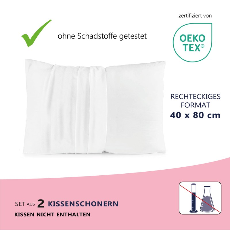 Twillie Set of 2 Waterproof Cushion Covers - for Pillow 40 x 80 cm - Oeko Tex® Zert Pillowcase Jersey Micro Breathable - Ultra Thin and Ultra Soft - Zip
