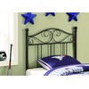 Alluring, romantic scrolls form the artistic personality of a classic. This twin headboard delights in a child's room or guest room. Fashioned from metal, its ornate design features vertical rods and ball-topped frame supports that contrast with fluid curves. Brown finish metal is both inviting and neutral. This headboard creates a tall, impressive embellishment to a twin bed and a focal point in a child's room.