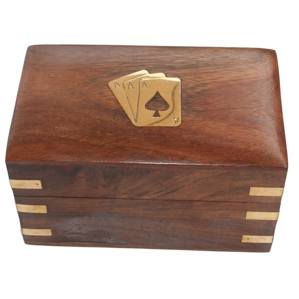 - Wooden card box containing 2 packs of playing cards 12.5x7.5x7.5cm