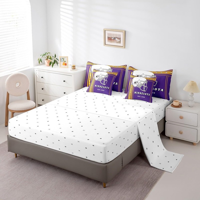 Twin Size 7-Piece Football Gifts Comforter Sets for Football Lovers American Football Comforter Set with Sheets,Minnesota(1 Comforter,1 Flat Sheet,1 Fitted Sheet,2 Pillowcases,2 Throw Pillow Covers)