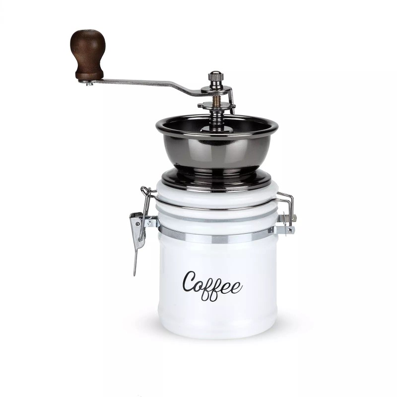 - VINTAGE STYLE HANDHELD COFFEE GRINDER - Grind your beans the old-fashioned way with this high-quality handheld burr grinder. With a latched ceramic jar attached, its a beautiful way to add a vintage touch to your morning coffee routine.