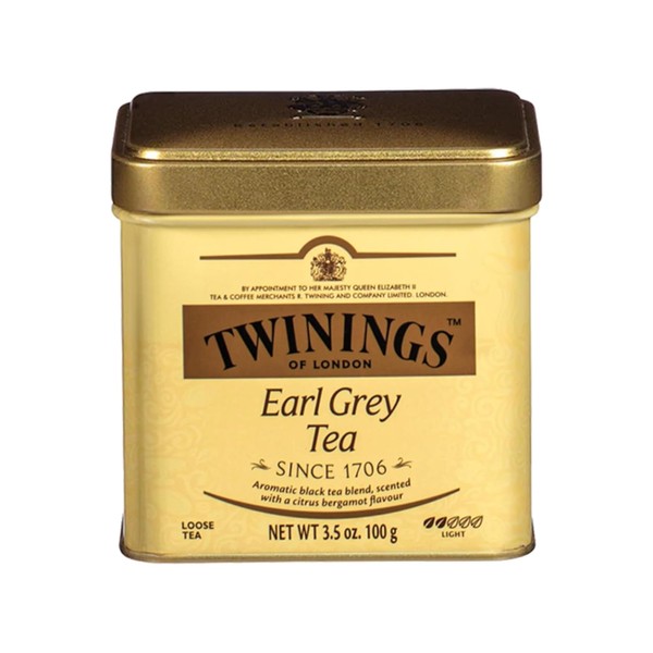 Twinings Earl Grey Loose Black Tea Tin, 3.53 Ounce Tin (Pack of 1), Flavoured with Citrus and Bergamot, Caffeinated, Enjoy Hot or Iced