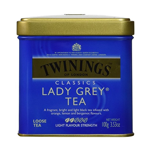 Twinings Lady Grey Loose Black Tea, 3.53 Ounce Tins (Pack of 1), Lemon & Orange Peel, Caffeinated, Enjoy Hot or Iced