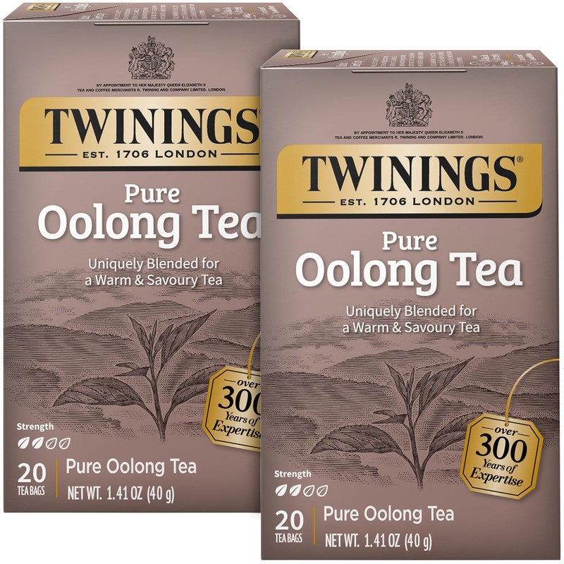 Twinings Pure Oolong Tea 2-Pack – Golden Caffeinated Tea, Individually Wrapped Tea Bags, 20 Count Each
