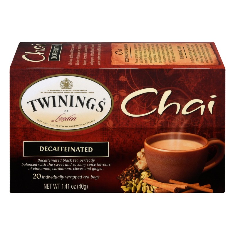 - TWININGS CHAI TEA ANY TIME: Enjoy a bold, spicy taste and rich, vibrant aroma with our Chai tea blend. This decaf tea can be served any time of the day with or without milk.