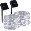 - Solar Powered Christmas String Lights: Add a soft, festive glow to your Christmas decor with Twinkle Star 2 pack 120 super bright LED solar white lights. Made of thin and flexible wire, easily build the shapes you want, enhancing outdoor lighting in every holiday season. The string lights is 39.4 ft, Long power cord: 6.5 ft, Total Length: 45.9ft.