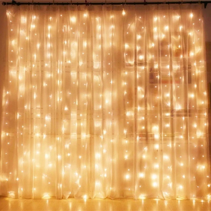 Cortina De Cadena De 300 Luces Led Para Ventana, Boda, Hogar
