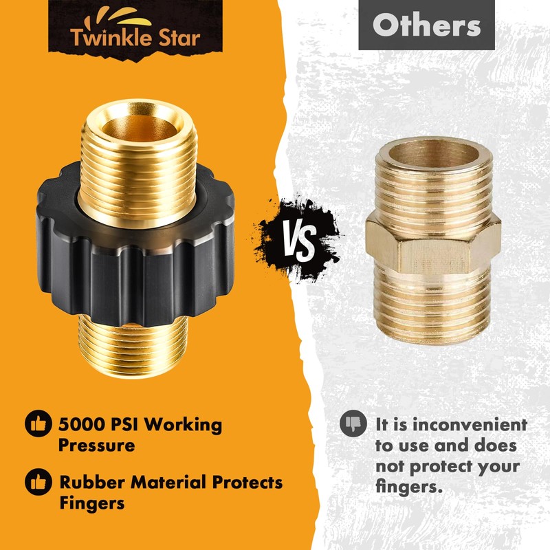 Twinkle Star Pressure Washer Hose Adapter, M22 Metric Male Thread Fitting, 5000 PSI Pressure Washer Connector, 2 Sets