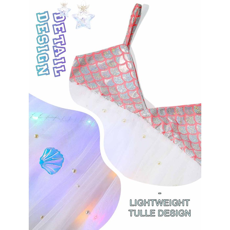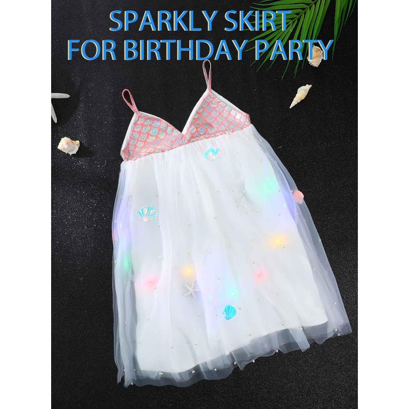 TWINKLEDE Girls Light Up Tutu Dress Mermaid Starfish Dresses Glow Party Birthday Outfits for Kids Pink
