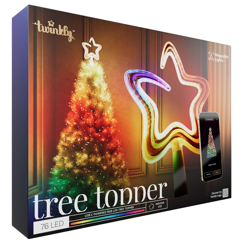 - A finishing touch to any Twinkly tree. This stunning star-shaped tree-topper features ultra-vibrant, smart LEDs that shine with extraordinary brightness to complete any Christmas tree decorated with Twinkly lights.