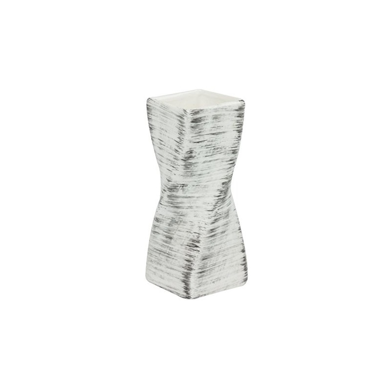 Twist ceramic flower bouquet vase in white colour with black stripes