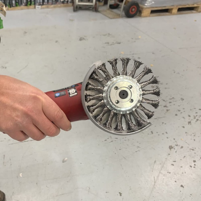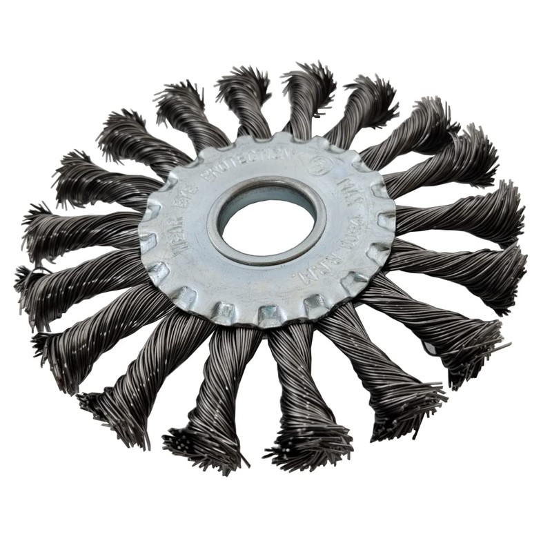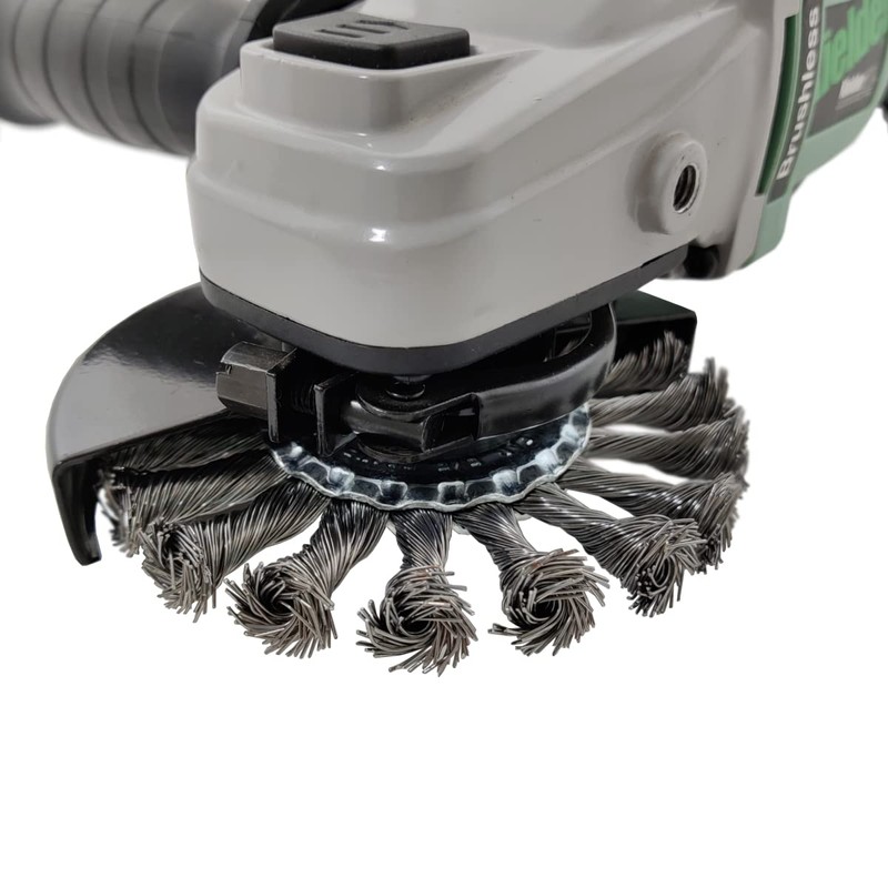 - Angle grinder twist knot wire wheel brush, 115mm x 22.2mm.