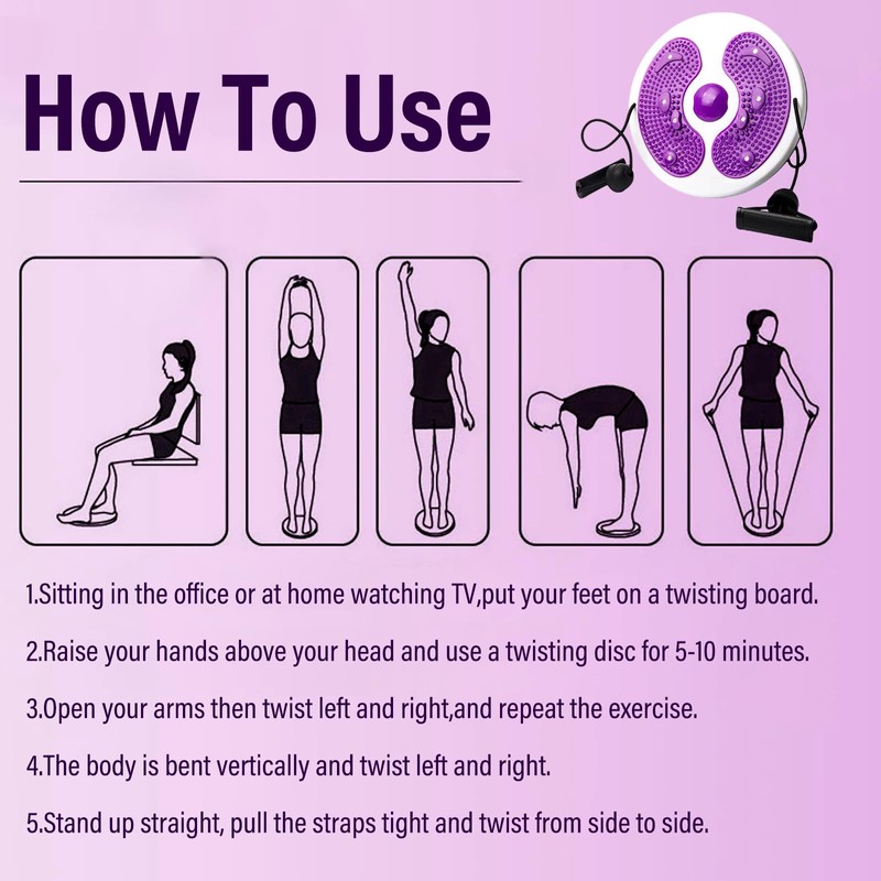 - Full body workout: With our twistboard exercise, you can complete a complete workout that trains your core, lower back and oblique muscles. It trains the chest, tightens the arms, shapes the waist and stomach, tightens the hips, shapes the legs and trains the body in a versatile way.