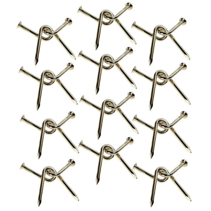 The twisted Nail or Bent Nail puzzle has been around for well over 150 years. The object is to separate the two nails AND then return to original hooked position. A tricky puzzle that is apt to stump one for a few minutes. This is a bundle of 12 (twelve) IDENTICAL Puzzles. Packaged bulk. Perfect for stocking stuffers, prizes, tavern doo-dads, corporate gifts, and party favors. Almost everyone is drawn to this puzzle and needs to give it a try. It is tricky, fun brain teasers. NOT overly difficult. But it can stump some people for quite a while ! Nails are approximately 2 1/4 inches long. Solid, rugged puzzle. When you get real good attempt to do it behind your back and baffle your friends ! Recommended for ages 14 to 100 years. Bundle of 12 identical Bent Nail Puzzles. Returns are always cheerfully and promptly processed. This is a bundle and MUST be returned as a complete bundle for any return to be processed.