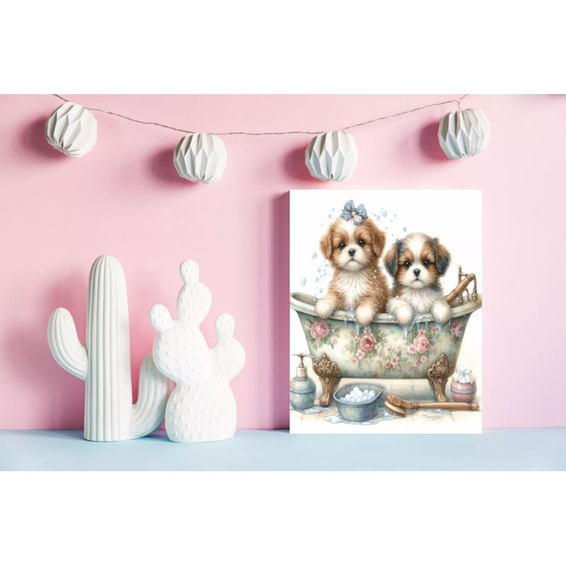 Twisted R Design 11x14 Puppy Bath Bathroom Canvas Wall Art
