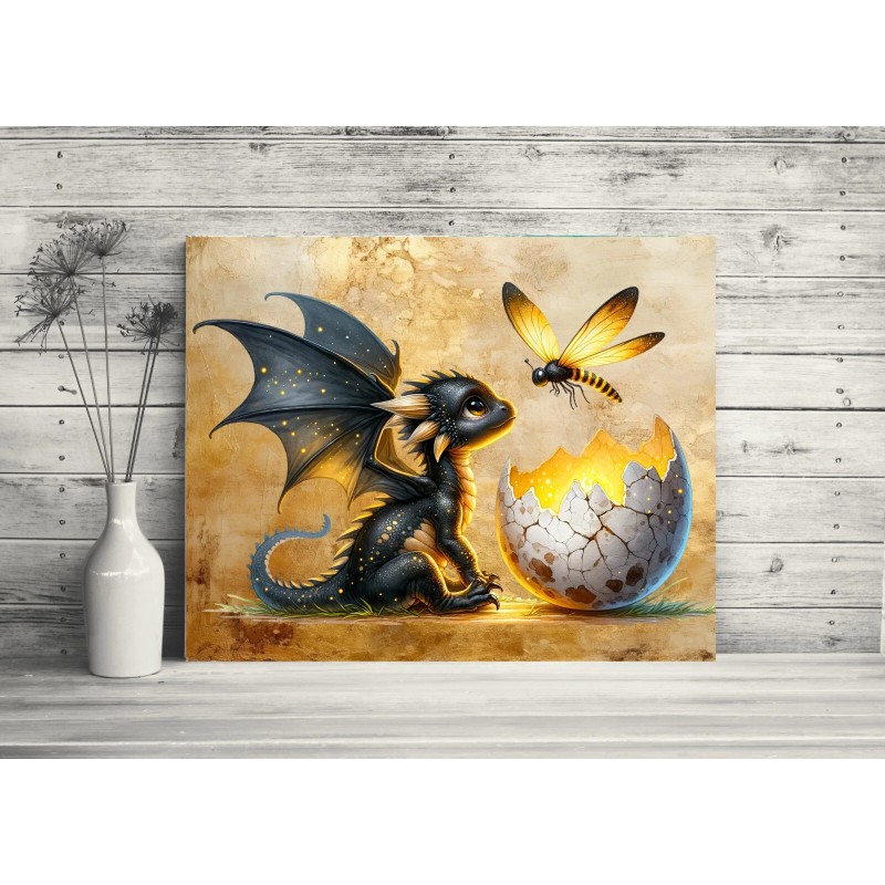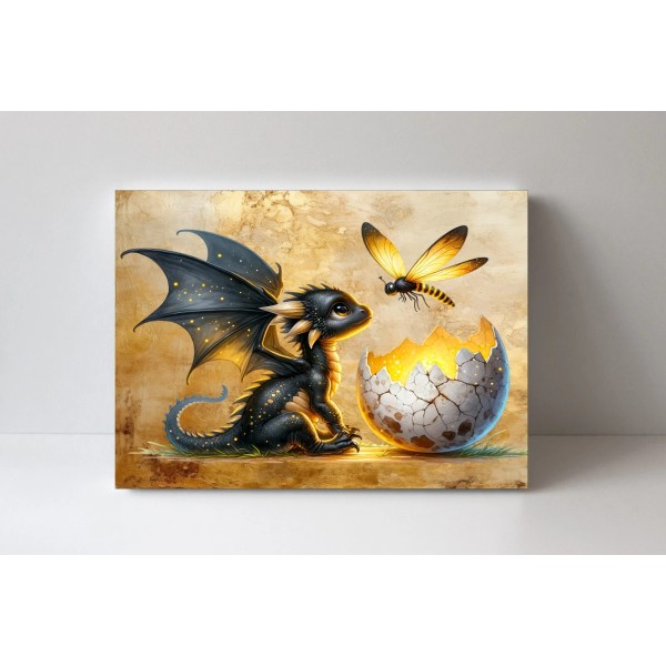Twisted R Design 20x16 Black Dragon and Firefly Nursery Canvas Print Wall Art