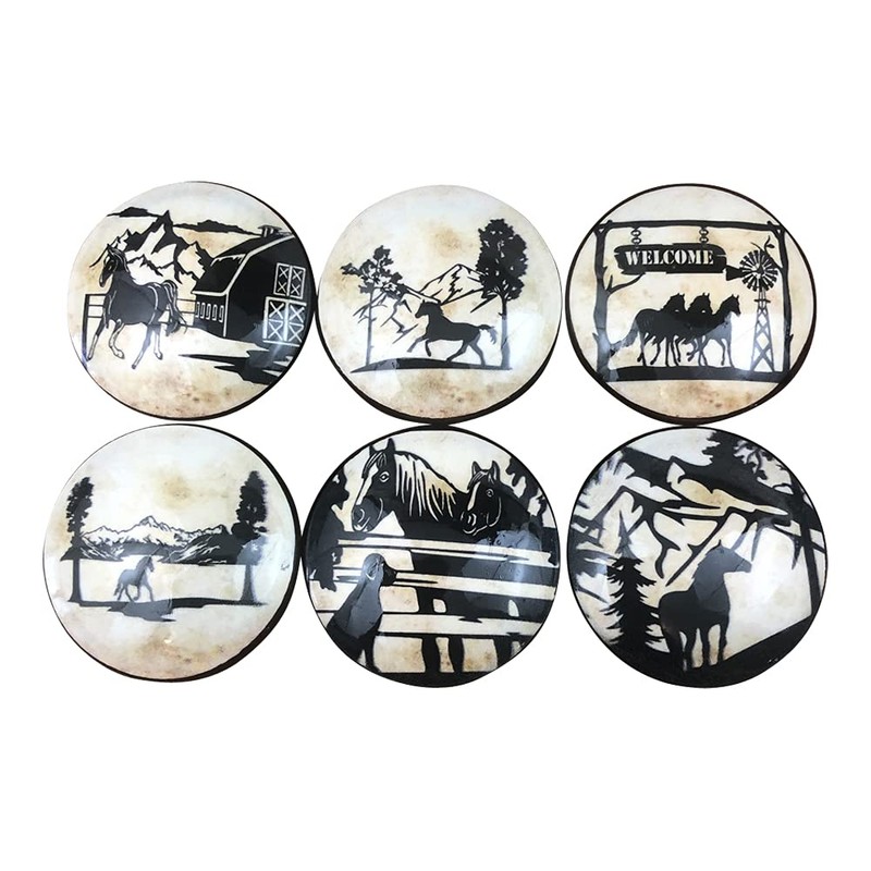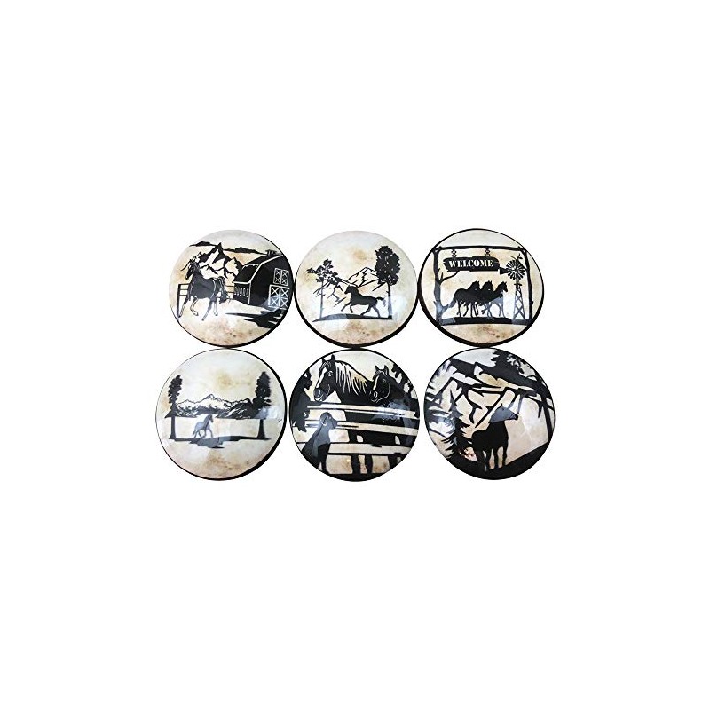 Twisted R Design Cabinet Knobs, Knobs for Kitchen Cabinets and Drawers, Matching Cabinet Knobs and Pulls, 1.5" Round Dresser Knobs (Set of 6 Horse Silhouette Wood Knobs)