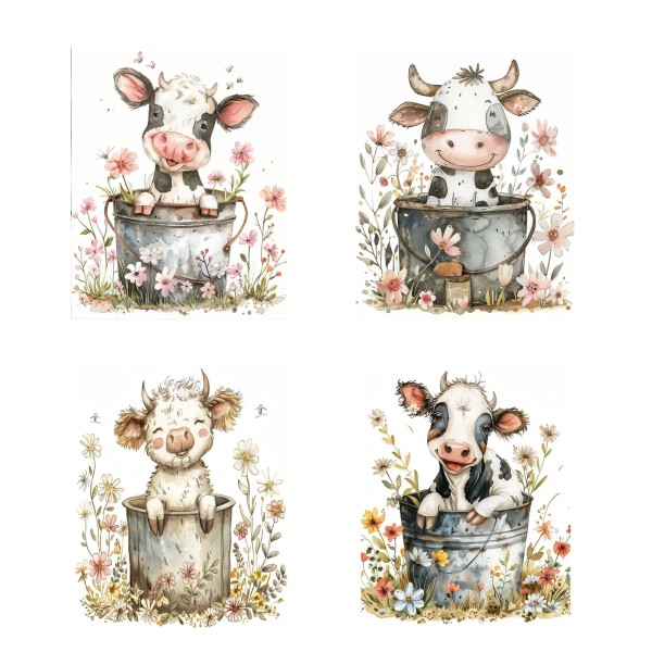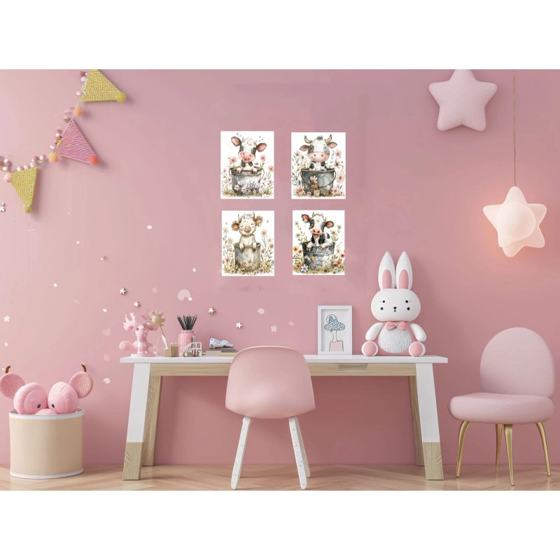 Twisted R Design Set of 4 8x10 Cute Cows Nursery Wall Art Canvas Prints
