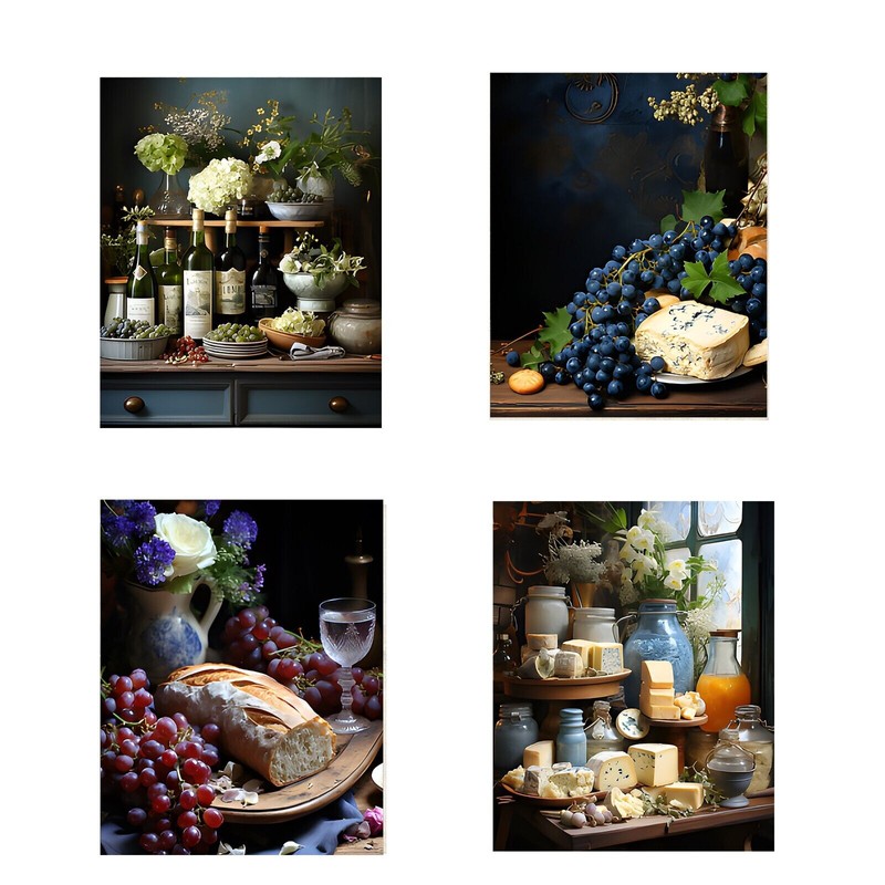 Twisted R Design Set of 4 8x10 French Wine and Cheese Wall Art Canvas Prints