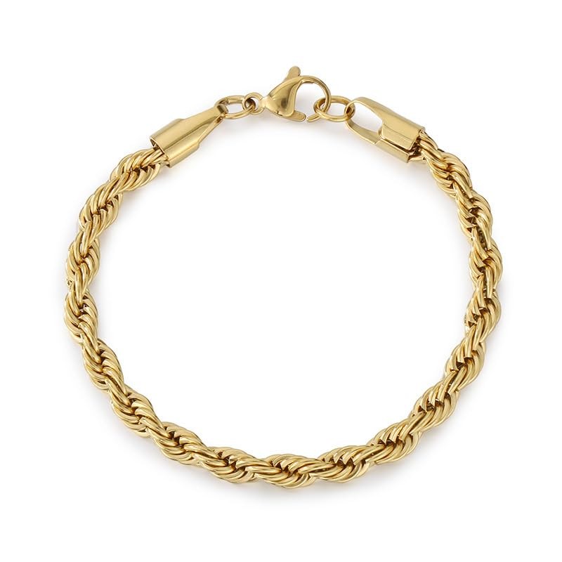 Twisted rope bracelet Simple stainless steel Twists chain for men and women (Golden, 20cm)