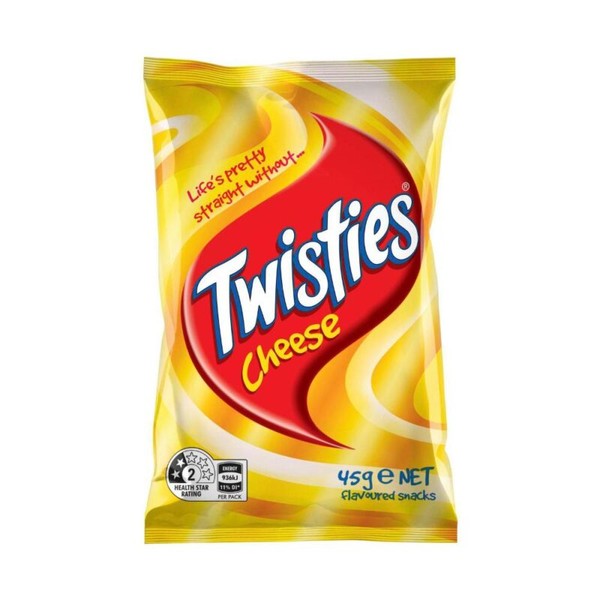 Twisties are probably Australia’s favourite food snack. The delicious twisted chip covered in cheesy flavouring makes mouths water. Twisties Cheese are a crunchy, irresistible cheesy snack. Perfect to have on the go, life is pretty straight without…Twisties!