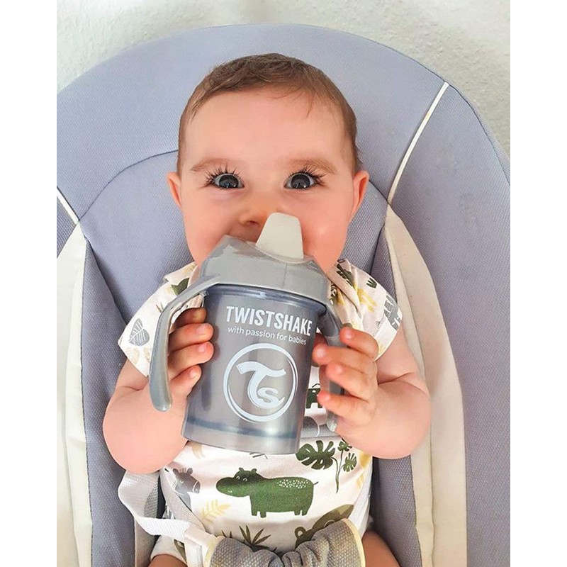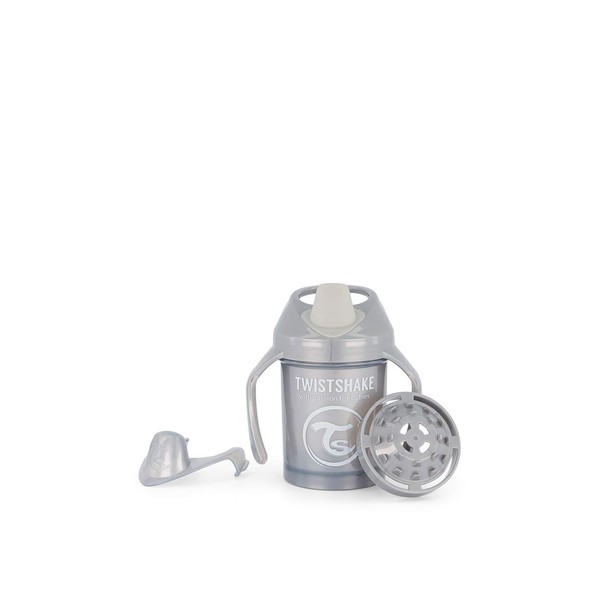 Twistshake Mini Cup 230ml/8oz, Plastic Spill-Proof Cup for 4+m Baby or Kid (Pearl Grey)