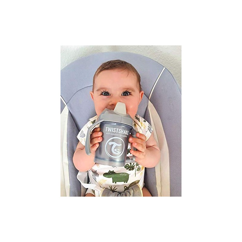 Looking for a superior choice for your child to start learning to drink from cups or glasses? Then the Twistshake 4+M Crawler Mini Cup is the perfect solution for you! This cup is an excellent stepping stone for the child who has grown out of his or her baby bottle and is learning to transition to cups and glasses. It is designed with a spill-free spout that supports the active lifestyle of children. Another feature is the easy-to-grip handle, which lets your little ones play without making a mess. With this amazing sippy cup, there are no more spending hours cleaning up messes or spills. Plus, as a situational design, you can easily remove the silicone seal and the cup will have a free flow. Since every parent wants the best for their child, we’ve included a fruit mixer. This is a revolutionizing, patent-pending, innovation that lets child and parent alike create amazing drinks. Simply mix your favorite fruits and berries with water and shake to create a delicious, healthy, natural fruit-infused beverage. We understand how important it is to keep your child healthy, which is why our plastic crawler cups and their accompanying lids are made without the use of harmful BP chemicals that can be toxic for babies and toddlers. We only use PP and TPE-plastic that doesn’t leak poisonous substances into the food or water contained inside. We want your little one to be safe during feeding time! Check out our other crawler cups that come in various colors. These colors include black and white, as well as pearl colors like pink,blue, red, copper, grey, and peach. Help your child during their transition between bottles and glasses with this amazing crawler cup from Twistshake.